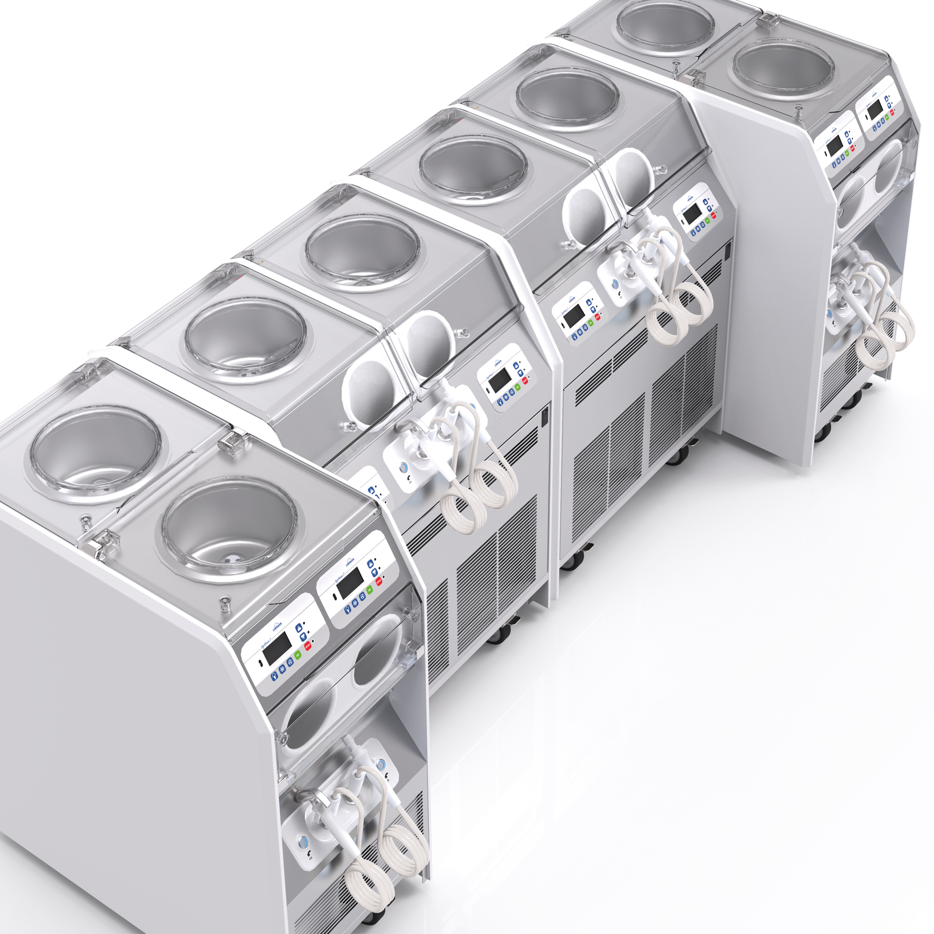 - Sistema modular: Cada módulo consta de dos cilindros completamente independientes, permitiendo producir diferentes sabores de gelato al mismo tiempo.