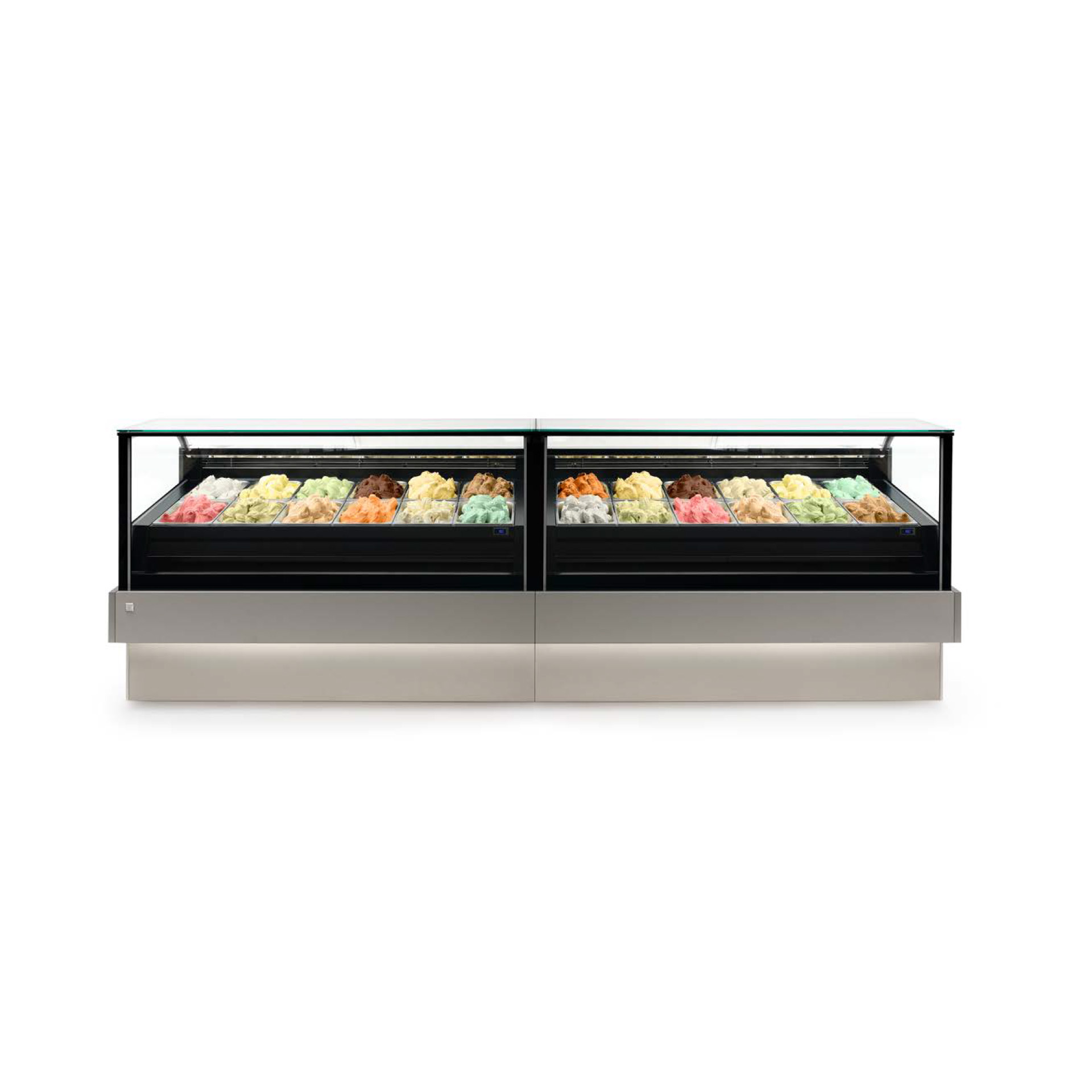 La Vitrina IFI Milia es el reflejo de la excelencia en cada punto de vista, diseñada por Makio Hasuike & Co. para ofrecer la mejor visibilidad a tus gelatos y helados sin barreras visuales y con un sistema de iluminación LED de tres fuentes que resaltan la calidad y atractivo de tus productos.