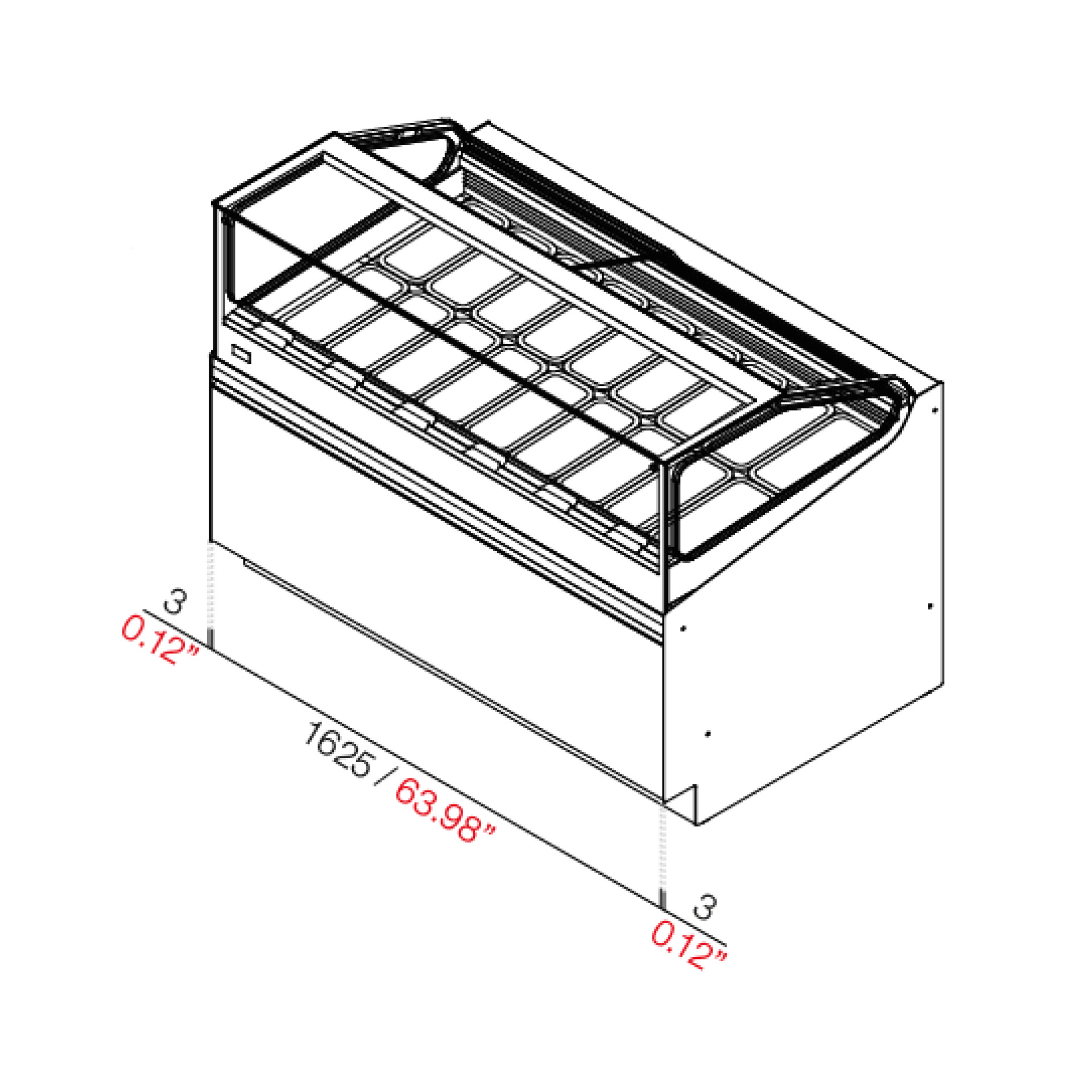 Including 12 gelato trays measuring 14.2“ x 6.5” x 4.7″, the display case allows for a wide variety of flavors to be presented, inviting customers to taste and explore new flavors.
